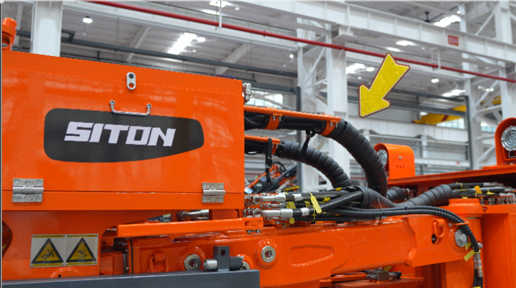 液壓走管優化布置在大臂上方,有效防止兩臂收攏時壓壞管道,提升系統可靠性。